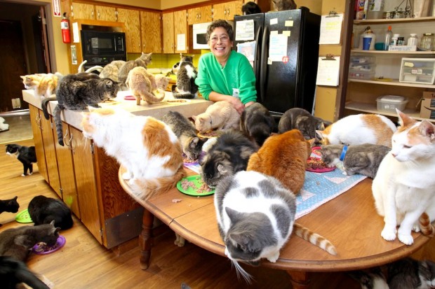 أظهر تسجيل مصور نشر على موقع يوتيوب ولقي رواجاً كبيراً بين المتابعين، امرأة أمريكية في منزلها الذي تعيش فيه مع أكثر من 1000 قطة في ولاية كاليفورنيا الأمريكية.