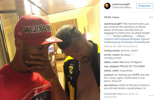 أين كان مرشحا لجائزة أفضل لاعب في إفريقيا لعام 2016 إلى جانب رياض محرز وساديو ماني، والتي توج بها في الأخير الدولي الجزائري، ونشر أوباميونغ منشور عبر حسابه على إنستغرام قبل بداية الحفل قال فيه بأنه تعرض لسرقة حقيبته الخاصة في سفريته إلى العاصمة النيجيرية أبوجا، وهو الأمر الذي جعله يظهر في حفل تسليم جوائز "الكاف" بلباس صنع الحدث عبر مواقع التواصل الإجتماعي.