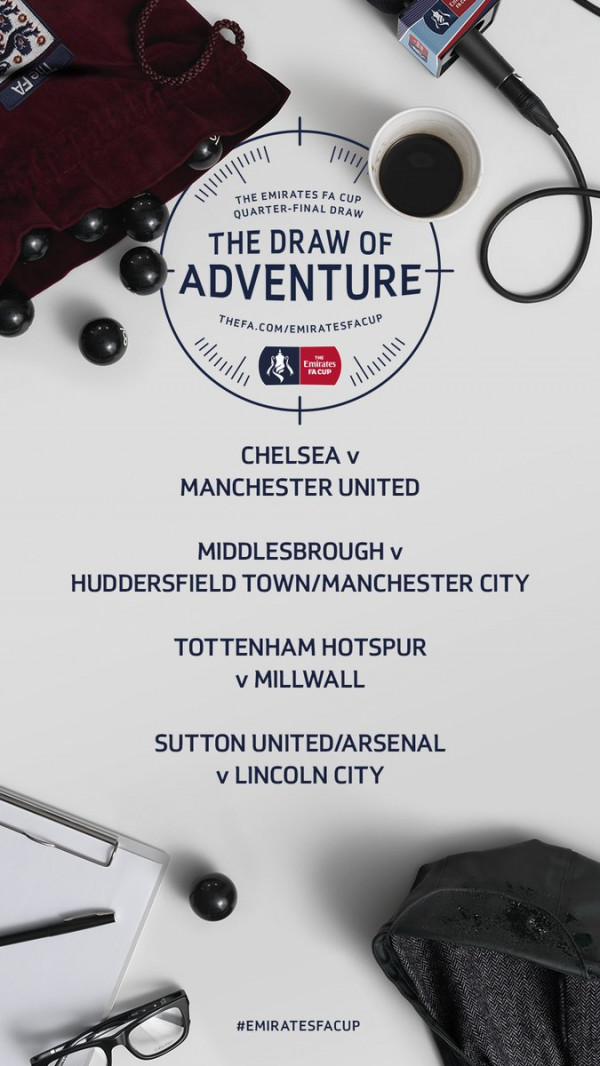 سحبت اليوم قرعة الدور ربع النهائي من كأس الإتحاد الإنجليزي.....