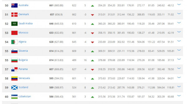 حيث تراجع المنتخب الوطني بأربع مراكز وأصبح يحتل المركز 50 عالميا و 11 إفريقيا و الخامس عربيا بعد كل من مصر، تونس، السعودية و المغرب، أما عالميا فتمكن المنتخب البرازيلي من إقتناص الصدارة متبوعا بغريمه الأرجتتيني، أما المركز الثالث فكان من نصيب المنتخب الألماني.