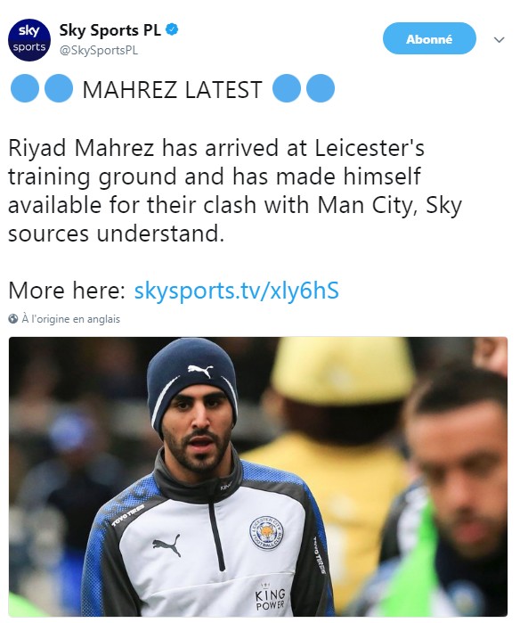 بعد أن قاطع التدريبات منذ نهاية الميركاتو الشتوي في 31 جانفي الماضي، وهذا بعد رفض إدارة "الثعالب" تسريحه لمانشستر سيتي، وكشفت شبكة "سكاي سبورتس" البريطانية أن النجم الجزائري قرر العودة إلى تدريبات ليستر سيتي صباح اليوم الجمعة، حيث إنضم إلى زملائه إستعدادا لمواجهة الغد أمام مانشستر سيتي، وكان مدرب الفريق الفرنسي كلود بويل صرح أمس الخميس أنه لايعرف ما إذا كان محرز سيشارك في لقاء السيتي أم لا.