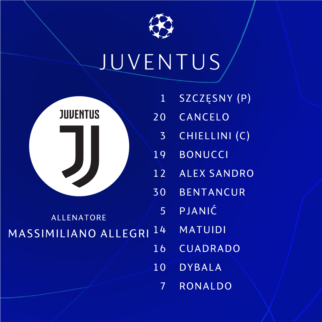حيث فضل وضع لاعبين أصحاب نزعة دفاعية في كرسي الاحتياط مع الدفع بكل مهاجميه من البداية، في حين عرفت تشكيلة جوفنتوس لإقحام أليغري لكل لاعبيه الجاهزين ما عدا إيمري كان وماندزوكيتش المصابين، وفيما يلي تشكيلة الفريقين