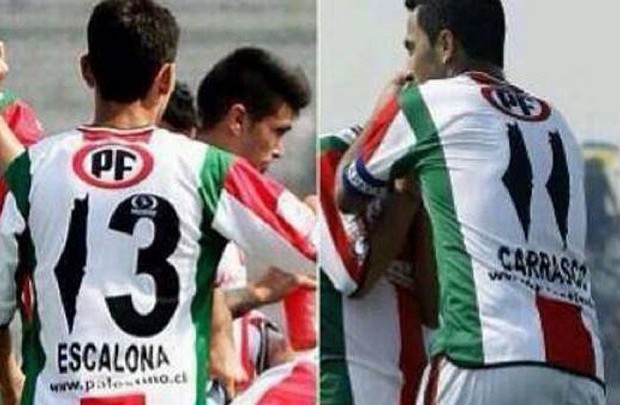 تضامن من فريق تشيلي لـ فلسطين ورقم 1 في أقصمة لاعبيه بشكل خريطة