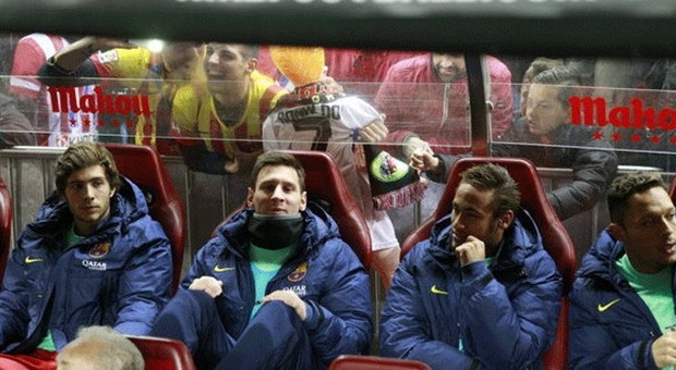حينما أقدم طفل من مشجعي أتليتيكو كان يحمل دمية لكريستيانو رونالدو نجم ريال مدريد ووضعها مباشرة خلف كرسي احتياط برشلونة الذي كان يجلس فيه ميسي ما جعل صحيفة "الموندو ديبورتيفو" تعلق على أن شبح رونالدو لاحق ميسي حتى في مباراة أتليتيكو مدريد، واستقبل ميسي الأمر بابتسامة صغيرة تبادل على إثرها أطراف الحديث مع زملائه.
