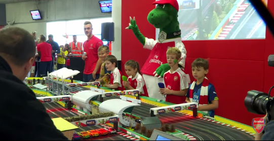 بالإضافة لتنظيم مسابقة لسباق السيارات الإلكترونية وهي اللعبة التي تلقى صدى واسعا لدى الأطفال، ومن أجل إضفاء أجواء خاصة على هذه المسابقة والحفلة بشكل عام، قامت إدارة "المدفعجية" بتوجيه الدعوة لبعض نجوم الفريق الأول، والذين شاركوا في مسابقة سباق السيارات مع الأطفال، ويبدو أن هذا النادي العريق في إنجلترا يحرص على توطيد العلاقة مع مناصريه الكثر، خاصة فئة الأطفال الذين قد يغيرون النادي الذي يناصرونه في أي لحظة.