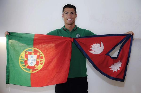 أظهر كريستاينو رونالدو نجم المنتخب البرتغالي تضامنه مجددا مع منكوبي الزلزال الذي ضرب نيبال مؤخرا وخلف العديد من الضحايا، حيث نشر الدون صورة له عبر مواقعه الرسمية على وسائط التواصل الإجتماعي وهو يحمل العلمين البرتغالي والنيبالي ومعلقا: "نتذر بإيجابية شعب نيبال، البرتغال ونيبال معا".