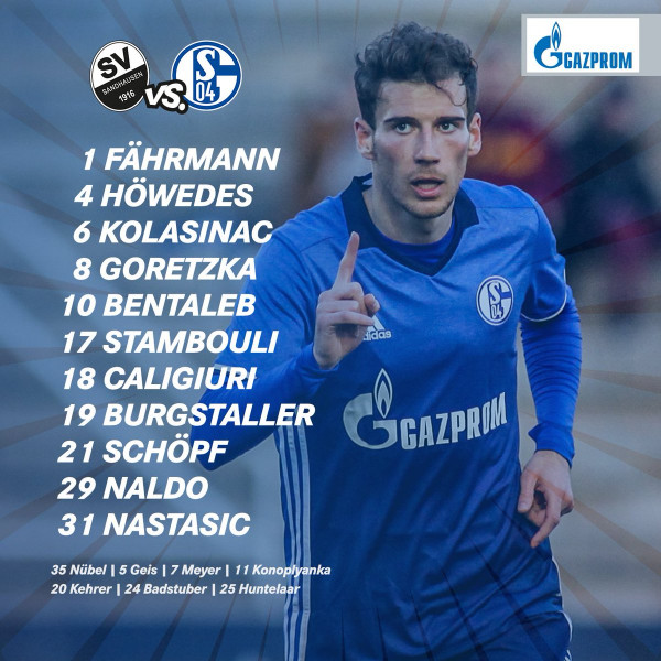 يواجه شالك مضيفه ساندهاوسن في ثمن نهائي كأس ألمانيا، وأعلن الفريقان عن التشكيلتين الأساسيتين حيث عرفت تشكيلة "الروايل بلوز" تواجد الجزائري نبيل بن طالب كأساسي.