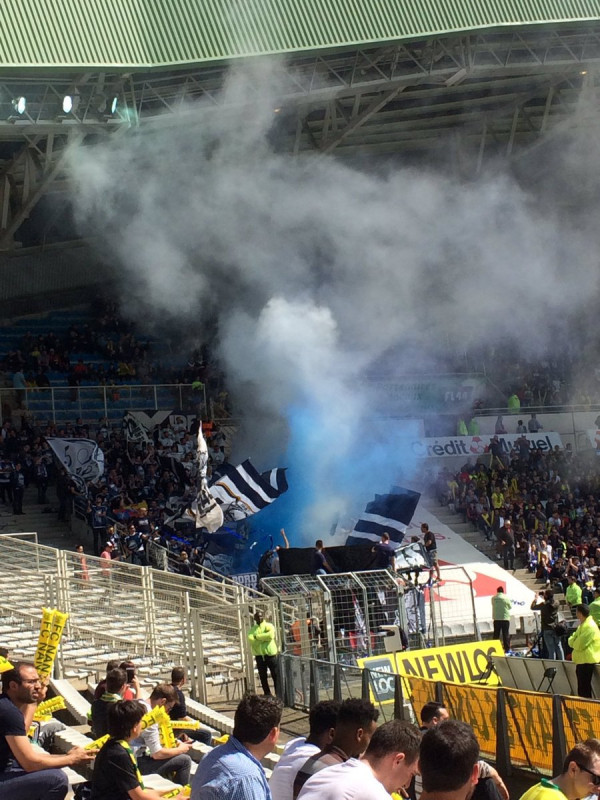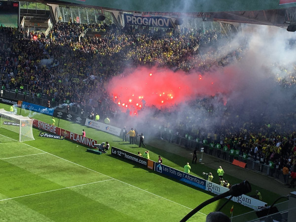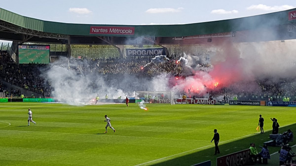 اضطر الحكم لإيقاف مباراة نانت وبوردو لـ 5 دقائق تقريبا بسبب شغب الجماهير، وألقب جماهير نانت الشماريخ والألعاب النارية على أرض الملعب وعلى مقربة من سيدريك كاراسكو حارس مرمى الضيوف وهو التصرف اذي دفع الحكم إلى إعلان إيقاف المباراة، قبل أن يستأنفها مجددا بعد هدوء الأنصار.