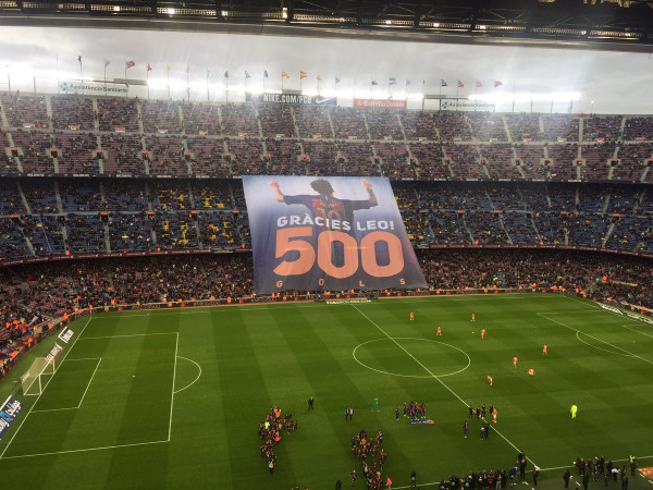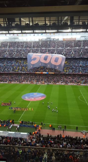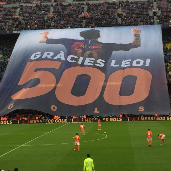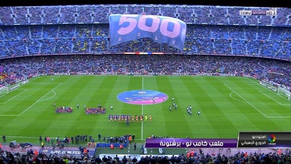 حظي ليونيل ميسي نجم برشلونة اليوم بتكريم خاص اليوم في ملعب "كامب نو" بمناسبة مباراة فريقه أمام أوساسونا في الجولة 34 من الدوري الإسباني، واستقبلت جماهير النادي الكتالوني نجمها بحفاوة بعد تألقه في"الكلاسيكو"، كما هنأته بوصوله إلى 500 هدف مع "البارصا".
