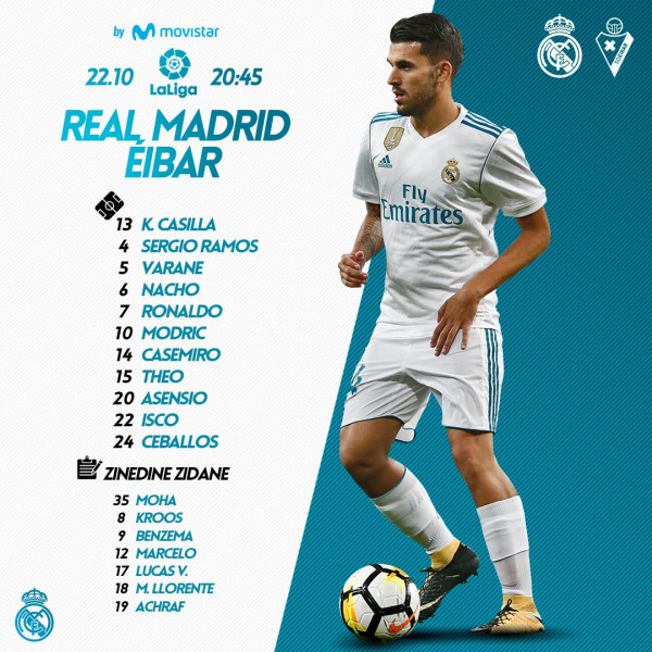 يستضيف ريال مدريد على ملعبه "سانتنياغو بيرنابيو" نادي إيبار، وهذا ضمن إطار الجولة التاسعة من الدوري الإسباني، وأعلن مدرب النادي "الملكي" زين الدين زيدان عن التشكيلة الأساسية التي سيدخل بها هذه المواجهة، والتي عرفت تواجد ماريسيلو، بن زيمة و كروس على دكة البدلاء.