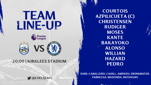 أعلن أنطونيو كونتي مدرب تشيلسي عن التشكيلة الأساسية التي ستواجه هيديرسفيلد لحساب الجولة 17 من الدوري الإنجليزي، والتي شهدت غياب موراتا بسبب الإصابة وتواجد الثنائي فابريغاس وكاهيل على دكة البدلاء.