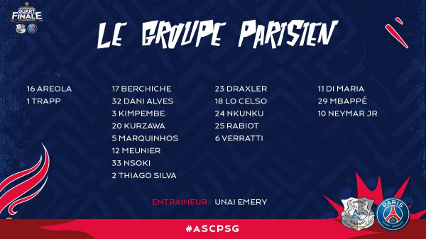 أعلن يوناي إيمري مدرب باريس سان جيرمان عن قائمة الفريق المعنية بمواجهة أميان غدا لحساب ربع نهائي كأس الرابطة الفرنسية، وشهدت قائمة النادي الباريسي غياب الثنائي إدينسون كافاني وخافيير باستوري بقرار من المدرب الإسباني بعد الحصص التدريبية الأولى للسنة الجديدة، ورغم أن إدارة النادي لم تؤكد أنها عاقبت اللاعبين إلا أن تقارير فرنسية كشفت أن إبعاد الثنائي للمباراة الثانية على التوالي يعد بمثابة عقوبة لهما بعد تأخرهما في العودة من العطلة الشتوية.