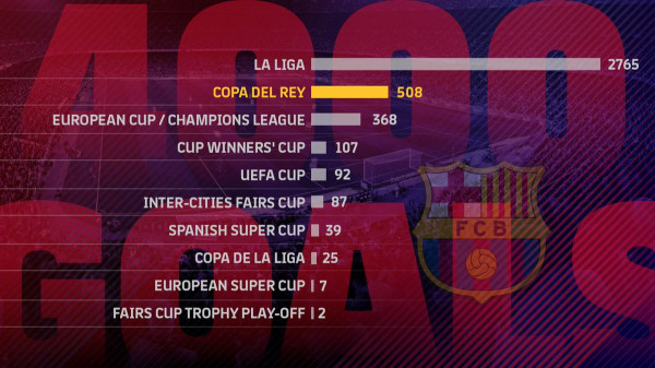 تمكن النجم الأرجنتيني ليونيل ميسي من تسجيل الهدف الثاني لبرشلونة، في المواجهة التي جمعته بالجار إسبانيول، والتي تدخل ضمن إياب ربع نهائي كأس ملك إسبانيا، وبفضل هذا الهدف بصم النجم الأرجنتيني على رقم تاريخي في مسيرته، حيث تمكن من تسجيل الهدف رقم 4000 لبرشلونة على ملعب "كامب نو" في جميع المسابقات.