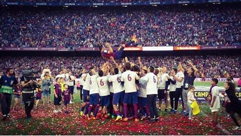 احتفال ‫#‏برشلونة‬ بالدوري الإسباني ووداع ‫#‏تشافي‬