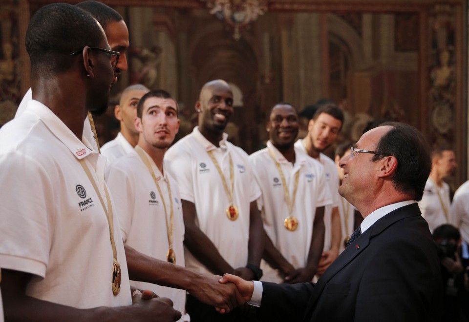 صور استقبال الرئيس اللفرنسي فرونسوا هولاند لمنتخب كرة السلة